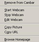 You can right-click on a webcam on the CamBar to open a menu that lets you control that webcam: